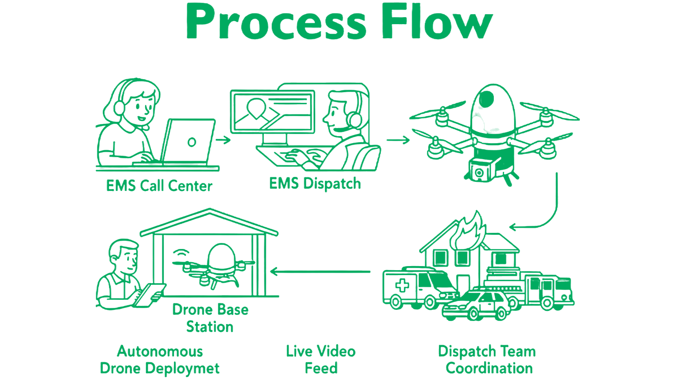 Real-time coordination with fire, EMS, and police units Secure LTE communication for remote control and live video transmission Map overlays and telemetry logs for detailed mission analysis